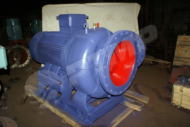 b.軸流泵保持軸向流動(dòng)(與葉輪旋轉(zhuǎn)中心平行)。