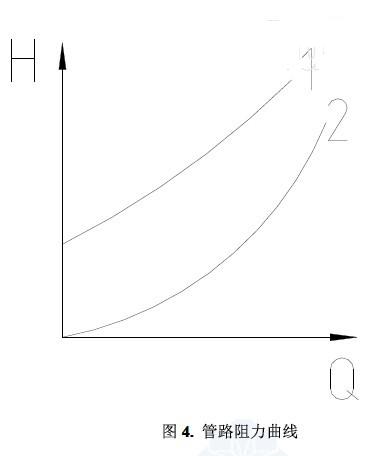 對開式系統(tǒng),管路水力曲線如圖4 中1 所示,其表達式如下: