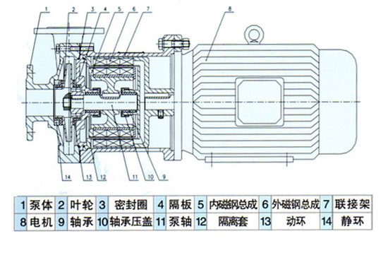 4.過載時,內、外磁轉子相對滑脫,對電機、泵有保護作用。磁力泵廣泛的用途和優(yōu)良的性能吸引了眾多廠家的關注,然而,廠家常常會因為不知如何選擇適合自己工廠需求的磁力泵而頭疼,在此,小編向各廠家推薦以下一款磁力泵:一上海家耐磁力泵廠生產的CQB型磁力泵ZCQ型產品概述磁力驅動離心泵(簡稱磁力泵),通常由電動機,磁力偶合器和耐腐蝕離心泵組成。其主要特點是利用磁力偶合器遞動力,完全無泄漏,當電動機帶動磁力偶合器的外磁鋼旋轉時,磁力線穿過間隙和隔離套,作用于內磁鋼上,使泵轉子與電動機同步旋轉,無機械接觸地傳遞扭矩。在泵軸的動力輸入端,由于液體被封閉的靜止的隔離套內,沒有動密封因而完全無泄漏。ZCQ型自吸式,既有CQ型磁力泵的功能,又集自吸于一身,不需要底閥和引灌水,自吸高度4米,ZCQ、CQ、CQF、CQB型是新型無泄漏耐腐蝕泵,可配用單相、三相、普通、防爆電機。