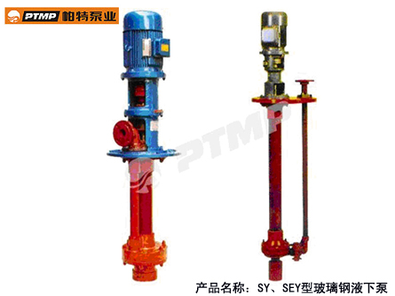 SY、WSY、FSY型玻璃鋼液下泵。WSY型泵為立式玻璃鋼液下旋渦泵、FSY型泵為立式玻璃鋼液下離心泵。該泵因伸入貯罐、只要液體高于泵泵體,既可不灌液而起運送液,平蓋板下設(shè)有泄漏孔。液體不會向貯罐外泄漏。
