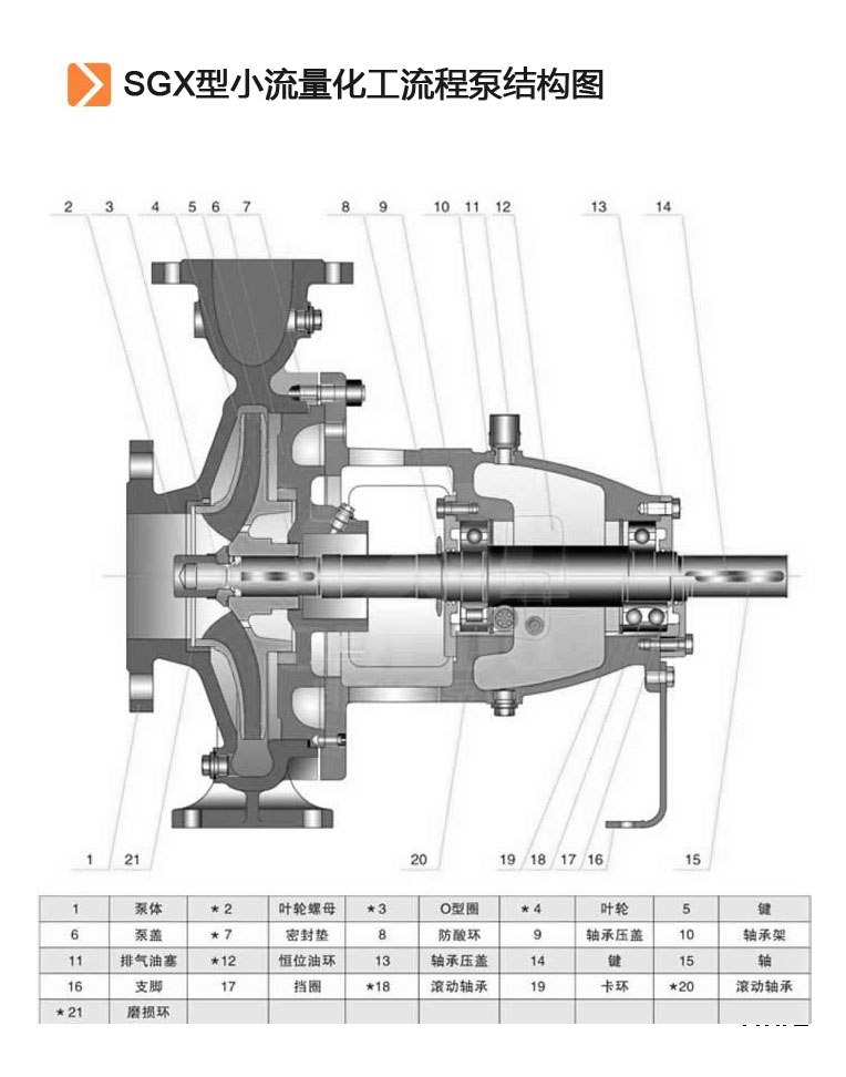 SGX小流量化工流程泵結(jié)構(gòu)說明