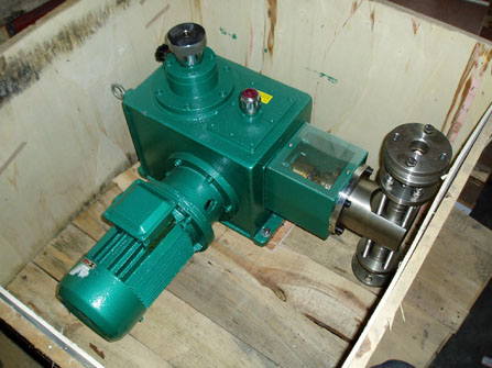 電機(jī)經(jīng)聯(lián)軸器帶動蝸桿并通過蝸輪減速使主軸和偏心輪作回轉(zhuǎn)運(yùn)動,由偏心輪帶動挺桿在導(dǎo)筒內(nèi)作往復(fù)運(yùn)動。連 同柱塞,通過單向閥的作用使泵腔內(nèi)逐漸形成真空,吸入閥打開,吸入液體;當(dāng)柱塞向前死點(diǎn)移動時(shí),此時(shí)吸入閥關(guān)閉 ,排出閥打開,液體在膜片的推動下排出。在泵通過調(diào)節(jié)一定的行程的往復(fù)順還工作形成連續(xù)有壓力、定量的排放液體 。